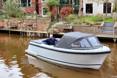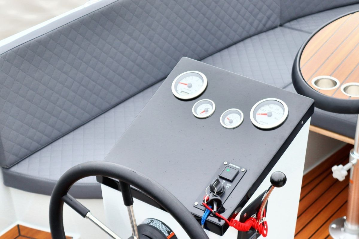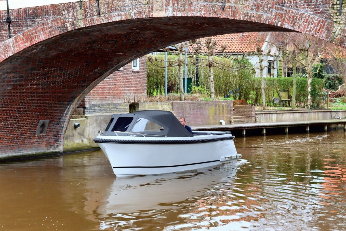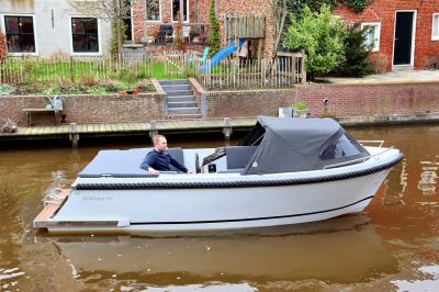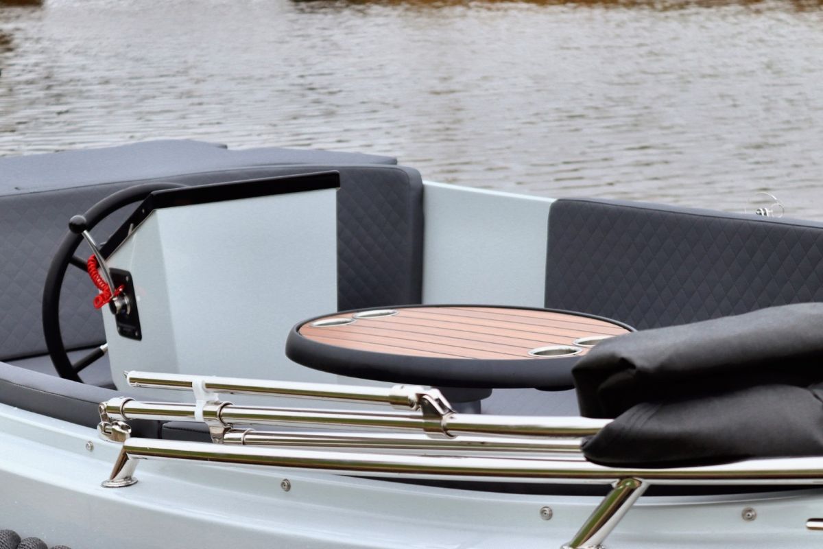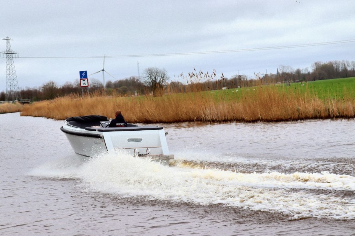 Deze tendersloep vaart stabiel en voorspelbaar, waardoor hij prettig aanvoelt op zowel rustig binnenwater als grotere plassen. De motor wordt netjes in bun geplaatst, wat zorgt voor een strakke uitstraling én stiller varen.