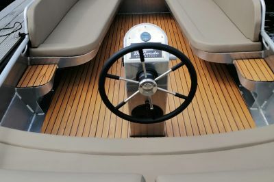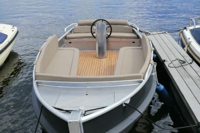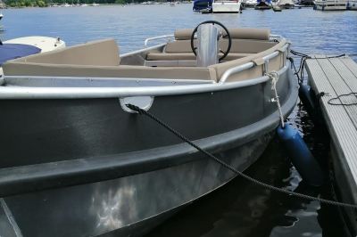 Geruisloos en milieuvriendelijk relaxen van het oogverblindende natuurgebied De Wieden? Dan is de Waterreijk 550 ideaal. Deze sloep beschikt over een stille elektromotor, die het zeker de hele dag volhoudt. Dankzij de rondzit met kussens kunnen er negen personen plaatsnemen.